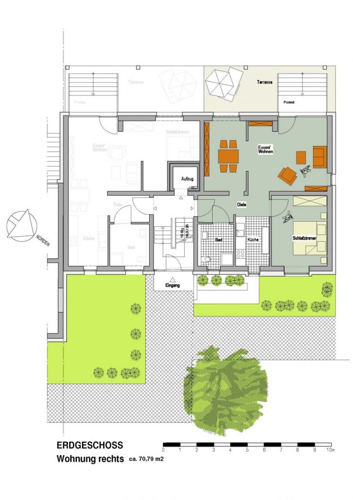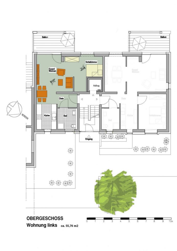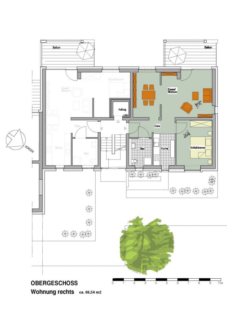 Die Dreizimmerwohnungen gibt es in unterschiedlichen Ausführungen: Je nach Bedarf kann das dritte Zimmer als Kinderzimmer, zweites Schlafzimmer oder auch als Arbeitszimmer genutzt werden. Wer es lieber offen mag, kann diesen Bereich aber z.B. auch als Essbereich oder als Sitzecke gestalten. Beide Wohnungstypen werden angeboten. Alle Wohnungen sind zudem über einen Aufzug erreichbar. Bei den Dachgeschosswohnungen fährt dieser sogar direkt bis in die Wohnung hinein! Überhaupt sind die Dachgeschosswohnungen mit ihren hohen Decken eine Kategorie für sich und bieten auf rund 98 qm nicht nur viel Raum für viel Individualität, sondern auch einen spektakulären Blick von einer beeindruckenden Dachterrasse.